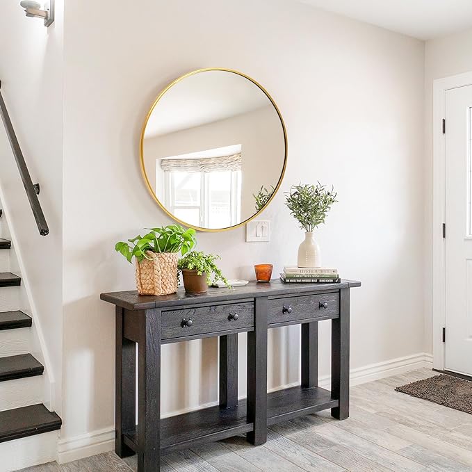 - Perfect Fit Interior Design - Great value and an excellent addition to your guest bathroom, which goes well with country chic inspired guest bathroom. And the simple round mirror is perfect fit for my entry way, bedroom, living room, baby nursery, office, which is a good wall decoration