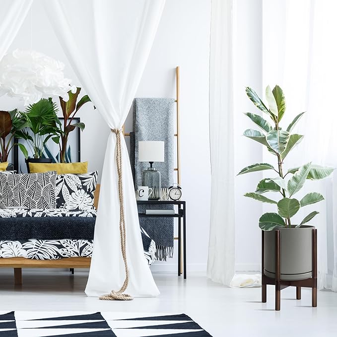 - A Complete Set: Mid-century ceramic planter, combined with a sculptural, solid wood stand that match perfectly together and looks great in anywhere.