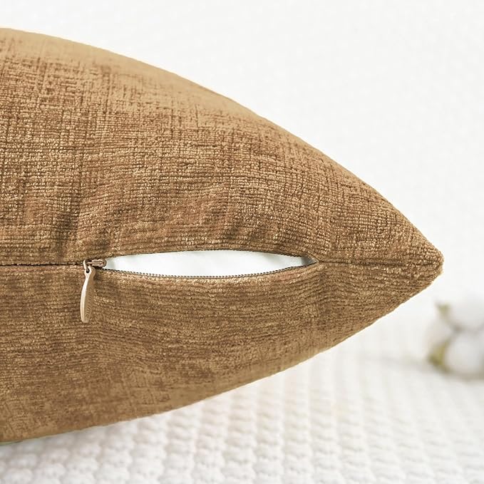 CaliTime Throw Pillow Covers Decorative 16 X 26 Inches Pack of 2 Cozy Chenille Cushion Cases for Couch Sofa Bed Living Room Home Apricot Brown