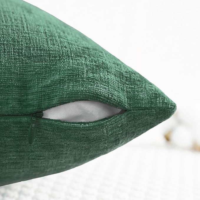 CaliTime Throw Pillow Covers Decorative 20 X 20 Inches Pack of 2 Cozy Chenille Cushion Cases for Couch Sofa Bed Living Room Home Dark Green