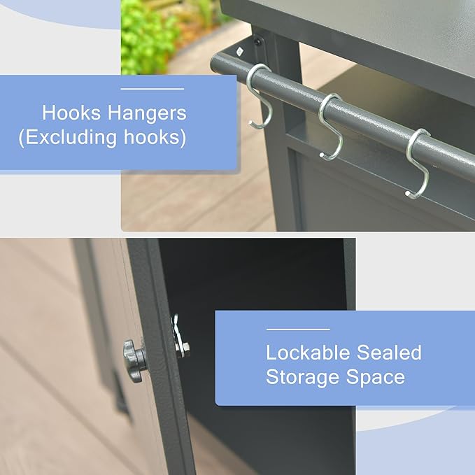 - Multifunctional- Domi grill carts work perfectly for gatherings on the deck or patio, giving you extra prep and serving space. Or as an outdoor storage cabinet, you can keep your gardening tools in one movable storage location, meet your specific gardening needs.