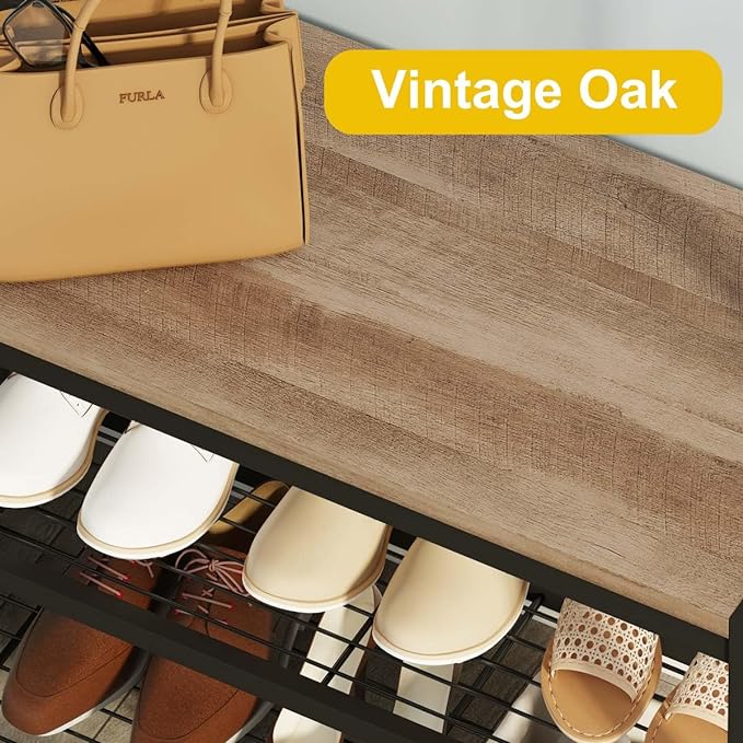 - 【Dimension and Long Lasting Material】This coat rack with shoe bench measures 41.34"W x 14.96"D x 69.61"H. And the shoe rack offers two different heights, accommodating a wide range of shoe sizes and styles. Crafted from high-quality MDF board and robust metal frame, this hall tree guarantees long-lasting durability.