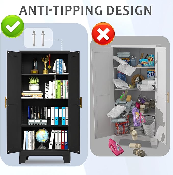- 『♕EASY Quick Assembly』The metal storage cabinet adopts an freestanding design, and pantry cabinet is a detachable structure as a whole. You only need a screwdriver to easily complete assembly. The cabinet with doors and shelves comes with installation instructions, and all parts are labeled to help you complete the installation faster. You can have a sturdy and stable steel cabinet without spending a lot of time and effort. Suggest two adults gather together