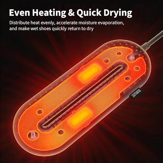 - [Porous Heat Dissipation]: 1532 heat dissipation holes are densely distributed in the shoe drying machine. When heating, an annular warm air flow is formed in the shoe space, and the 360° heat is evenly distributed, taking into account the sole and the upper of the shoe, and even the dead corners can be dried evenly.