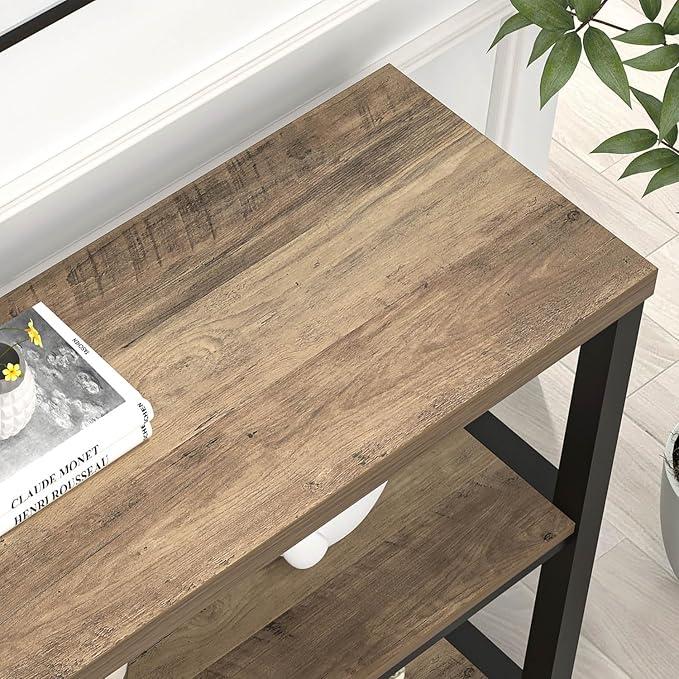 FOLUBAN Modern Sofa Table for Entryway, 3 Tier Narrow Console Table for Living Room Hallway Behind Couch, Rustic Oak