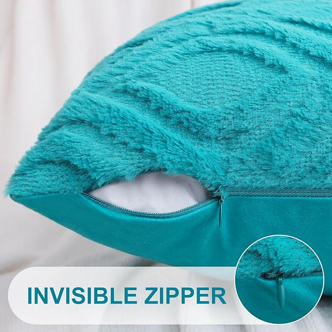 decorUhome Fall Throw Pillow Covers 24x24 Inch Set of 2, Soft Plush Decorative Faux Fur Turquoise Solid Couch Pillow Covers, Accent Farmhouse Neutral Square Euro Pillow Cases for Sofa Bed Living Room