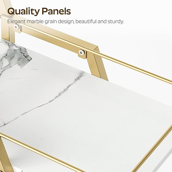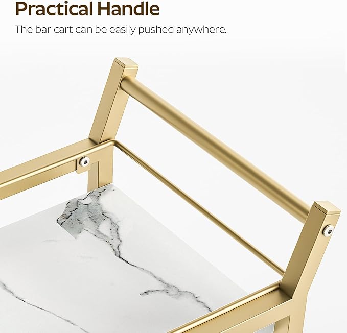 - Luxurious and Stylish: The gold bar cart adopts marble white patterned panels with a gold frame. Emphasizing modern simplicity with a touch of luxury, it enhances the overall color scheme of the space, impressing everyone who lays eyes on it