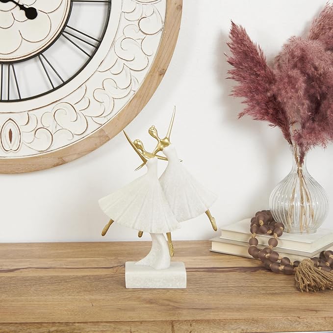 Deco 79 Polystone Dancer Decorative Sculpture Ballet Home Decor Statue with Gold Accents, Accent Figurine 9" x 4" x 13", Cream