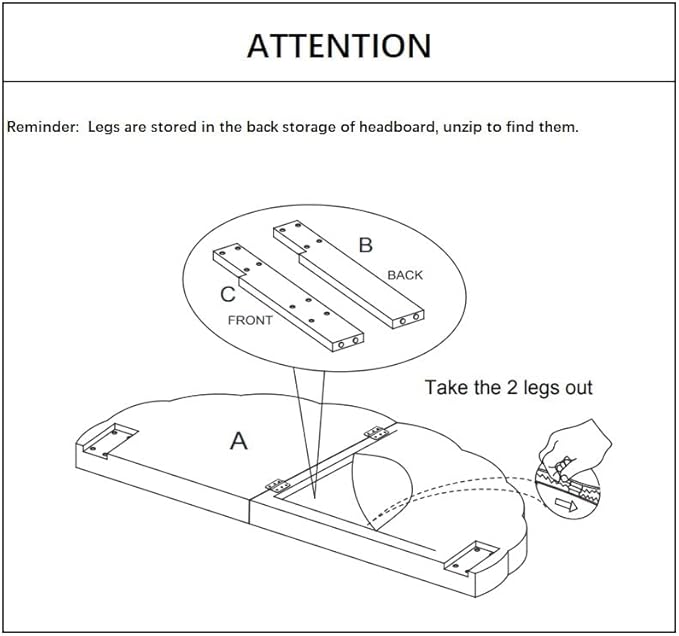 - Easy Assemble: Tools included for easy assembly . Remind: Legs are stored in the back of headboard,unzip to find them.