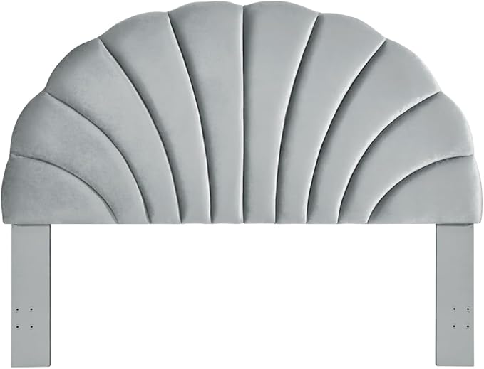 24KF Stunning Crown Design King Headboard, Upholstered Soft Velvet Petal Pattern Headboard King/CA King-Gray