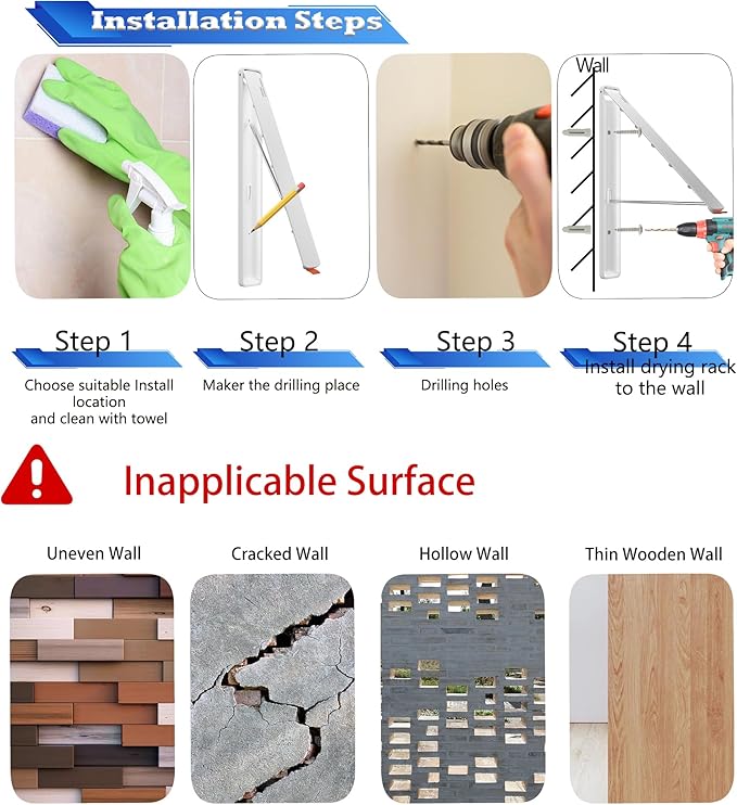 - 【Easy to Install】: Our package of clothe drying rack wall mounted comes with and screws way to install. If you have any questions about the clothe racks for drying clothes, please contact us and get satisfied service.