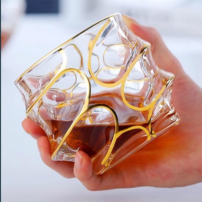 - Unique 24k Gold Plated: Look and feel luxurious. You are not going to find a more stylish old fashion whiskey glasses. Practical to Make an Impression on Guests with 2 Scotch glasses in unique luxury Style. Elegant, handcrafted barware glasses set comes coordinating double old-fashioned tumblers, allowing you to recreate your favourite movie scene. For all they know, you could be serving them your finest liquor! Create the ideal atmosphere at your home, workplace, man cave, James Bond hideaway, or bar.