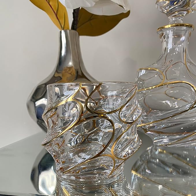- Designed with the finest glass: Distinctive diamond and gold wedge cuts. Ideal for sharing a favourite Scotch or whiskey with loved ones. This Collection is influenced by the rich Irish luxury heritage and features functional pieces. This liquor glasses set unmatched sparkle makes it ideal for all types of whiskey.