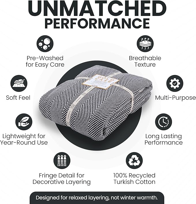 - LIGHTWEIGHT LAYERS FOR RELAXED MOMENTS: Woven from 100% recycled Turkish cotton, this breathable cotton blanket throw adds a soft, textured touch to your space; this bed throw blanket made for layering on your bed, or adding a laid-back look to your decor
