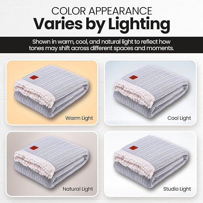 - CELEBRATE SUSTAINABLE STYLE: Made in Turkiye with recycled cotton, this cotton throw blanket brings eco-conscious comfort to your home; the soft weave and fringe detail give this woven blanket for bed a rustic, decorative touch that layers beautifully in any space