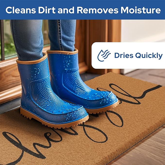 - Made of Durable Coir - Our doormats are made of 100% coconut coir fibers, one of the strongest and most durable natural fibers on earth. The high-quality coir used in its construction ensures that it will maintain its shape and appearance, even with heavy use. Please note that light shedding may occur, as is common with all natural coir mats. Additionally, avoid completely soaking mat with water as this could lead to natural coir runoff.