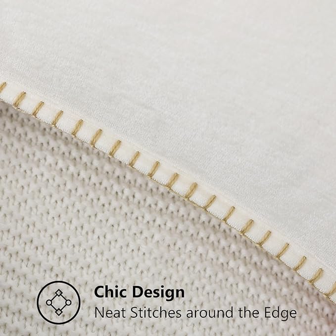 decorUhome Chenille Soft Throw Pillow Covers 24x24 Set of 2, Farmhouse Velvet Neutral Decorative Euro Pillow Covers with Stitched Edge for Couch Sofa Bed Home Decor, Cream White