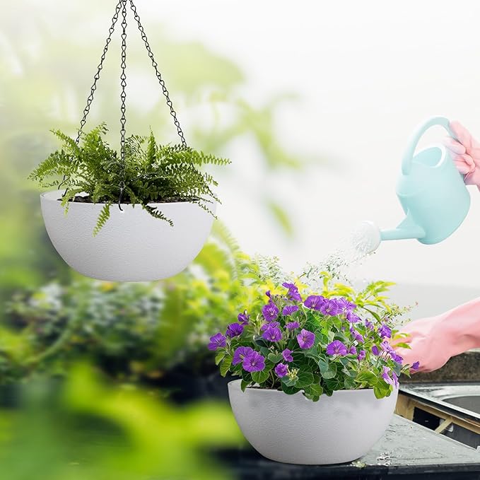 - Lightweight and Adjustable Hanger: Large hanging planters plant pots are made from brand new plastic, these planters are light enough to hang anywhere indoors and outdoors. Feel free to adjust the height to your liking with its sturdy heavy-duty triple chains hanger.