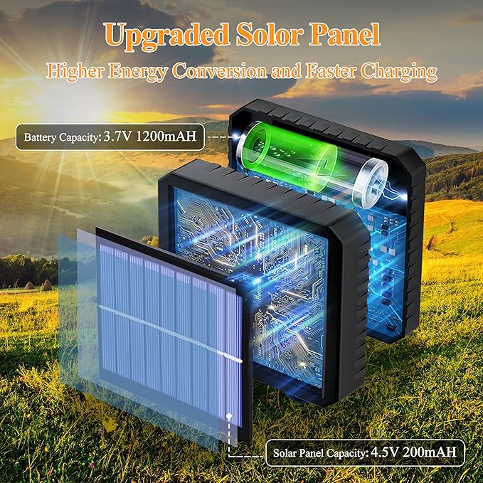 - 【Fast Charging Long Lasting】The outdoor string lights equipped with an 1200mAh rechargeable battery that can be quickly fully charged within 6 hours. Once charged, the lights can shine for about 18 hours. The lights are also equipped with a built-in sensor that automatically turns them on at dusk and off at dawn, making them more efficient and convenient to use