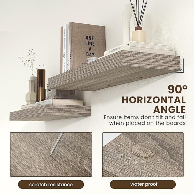 - EASY TO INSTALL - Come with all the installation hardware you need. We have a smart installation design. Thicken metal brackets help boards to be stable and load-bearing, vertical to the wall, and not sagging. The shelves have pre-drilled holes in the bottom to allow screws to secure the boards to the brackets to prevent them from slipping