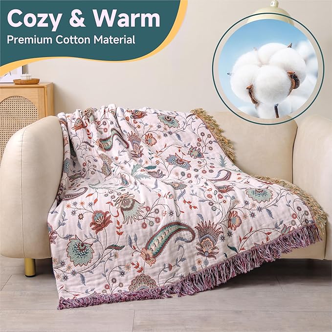 - DESIGN: Boho blankets add extra texture to your décor and transform your room into a cozy space. The bright colors are easy to mix and match with your décor or other decorative pieces, and the jacquard technique has a simple yet unique pattern. Brighten up your armchair or sofa with our bohemian sofa cover.