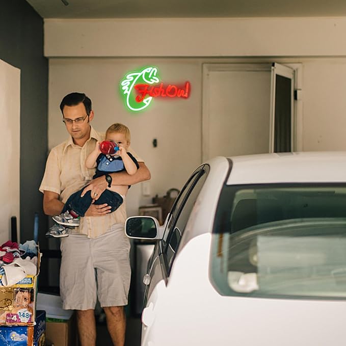 - 【Room Decor & Men Gifts】Fish on neon light up sign is definitely a good choice to decorate bedroom, living room, game room, garage, man cave, or yacht party. It is also an exquisite gift at birthday, Christmas, New Year's and anniversary for boys/friends/fishing enthusiasts/colleagues.
