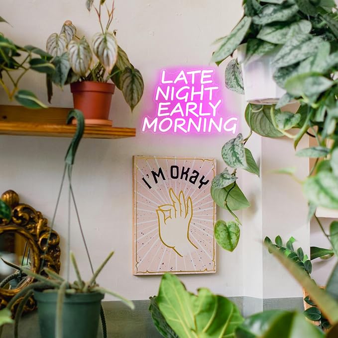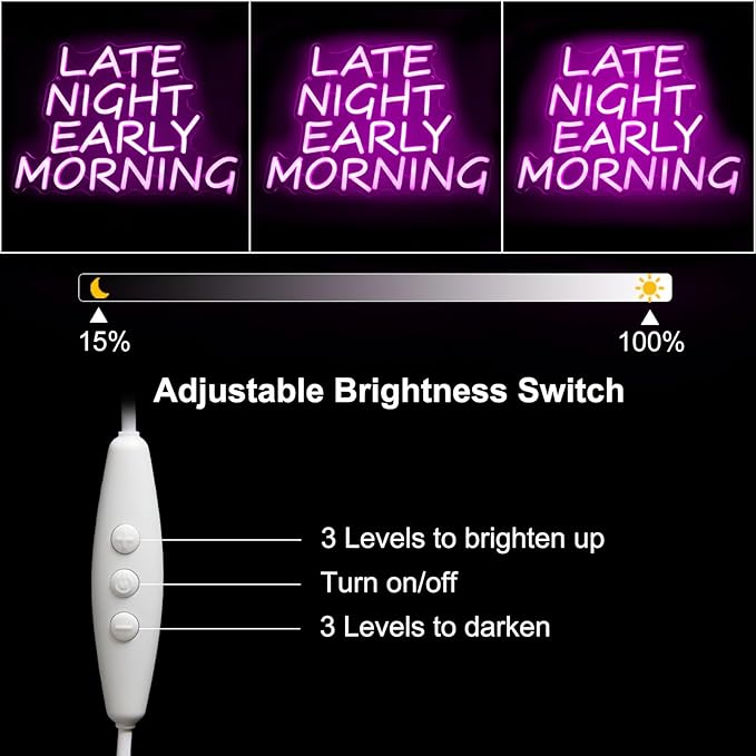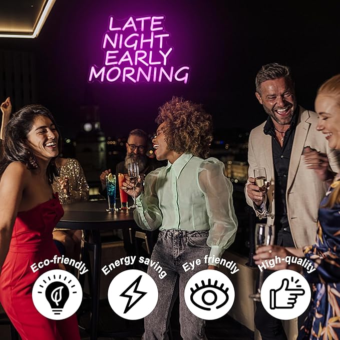 - 【Pink Letter Neon Sign】Late night early morning neon sign can help you relax and enjoy the beautiful atmosphere of the bar/party. The pink LED light words sign can immerse the mood in a wonderful night. Drink together, dance together, and experience the romance of neon signs together!