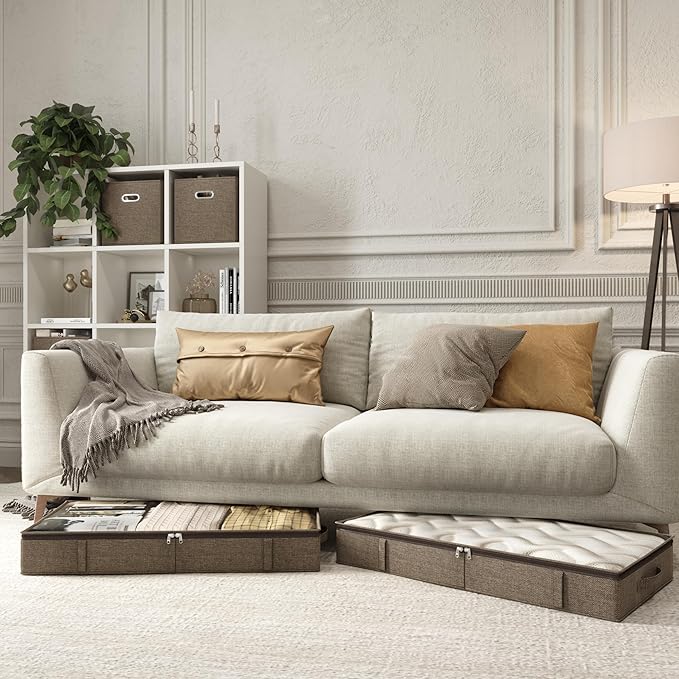 - ⭐️【LINEN HIGHT QUALITY MATERIAL】- Underbed storage containers are made from high-quality, odorless linen fabric, durable and breathable, can store out-of-season clothes during long-term storage. The sides are strengthened with cardboard inserts that hold their shape and have a folding, cardboard-reinforced bottom.