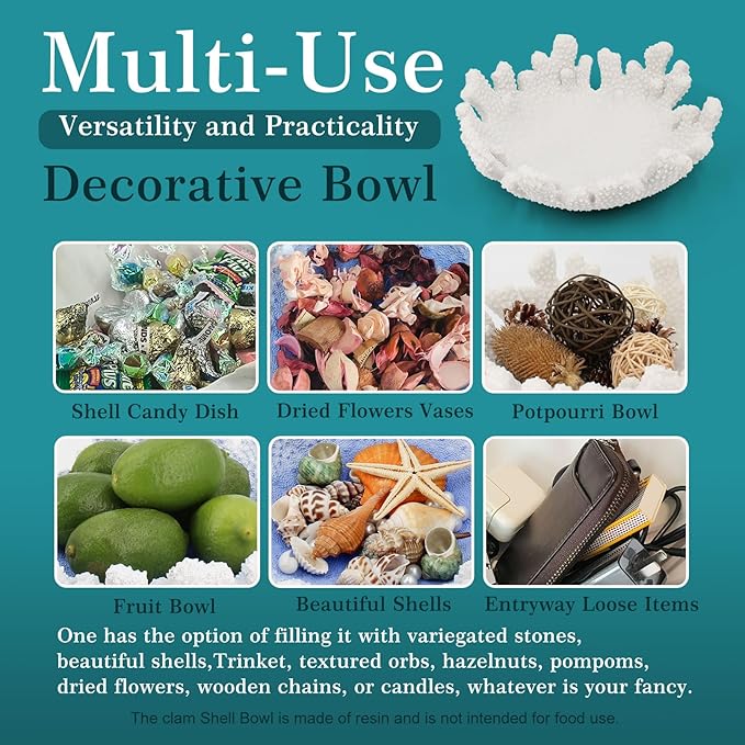 - [Beach coral decorations for home] This white coral decorative bowl is inspired by the serenity and allure of coastal living. With soothing hues and natural textures, it brings effortless beach charm to any home. Experience the feeling of being on a perpetual vacation at the seaside, all without exploiting our precious oceans. This coral decorative bowl perfect for modern coastal bowl decor and coastal decor for home