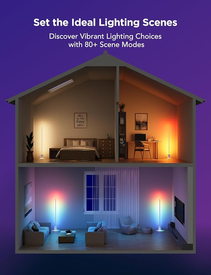 - Elevated Smart Home Experience: Effortlessly illuminate your smart living space with easy-to-customize timing settings. Also, sync this floor lamp and other Govee lighting products with a single tap for vibrant colors and scene modes. (Note: Supports 2.4 GHz WiFi only.)
