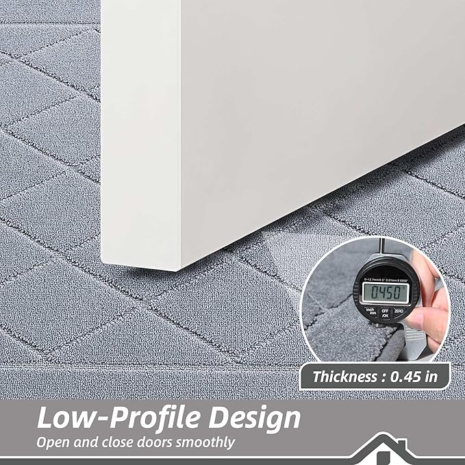 - Stylish and Low Profile Design: Fashionable geometric patterns are suitable for most kinds of home dΓ©cor. Our doormats measure 20" x 32" x 0.45", low-profile design and reinforced overlock edges to ensure that doors won't get stuck or the door rug go curling. Note: Please confirm the height of the door gap before purchasing