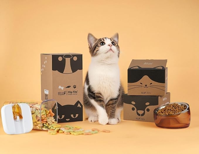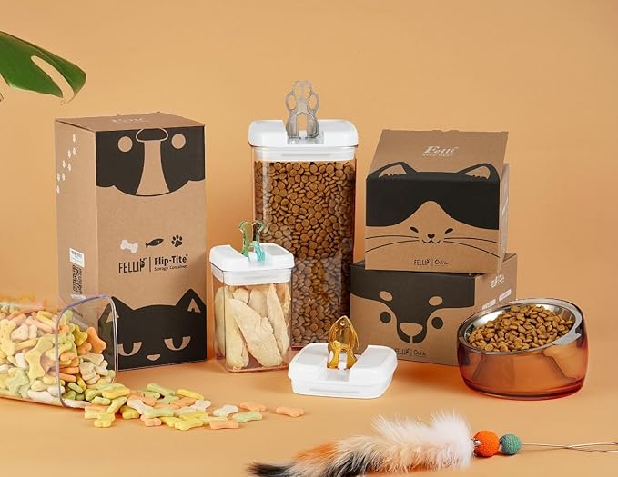 - FUN PAW FISH BONE SHAPED HANDLE: Designed with pet lovers in mind, this container features a patented easy flip top mechanism that makes the lids sturdy and smooth to operate. The unique paw-shaped handles add a playful touch while allowing for easy one-handed opening and closing. It's a stylish and functional addition to any pet owner's kitchen or pantry.