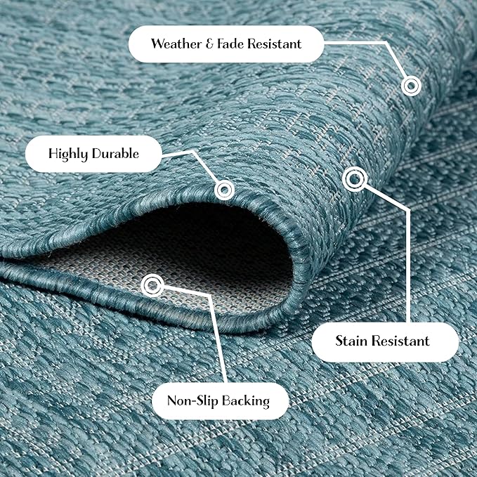 Adiva Rugs Outdoor Indoor Area Rug, Weather Resistant, Easy to Clean, Stain Resistant Floor Mat for Dining Room, Backyard, Deck, Patio (Aqua Weiss, 2'6" x 7')