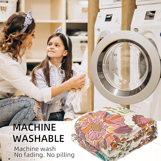 Boho Throw Blanket for Bed - 100% Pure Cotton Ultra Soft Rustic Quilt - Farmhouse Decor Bed Blankets, All Season Rustic Throw for Sofa Couch Chair(80''x 90'', Floral Blossom)