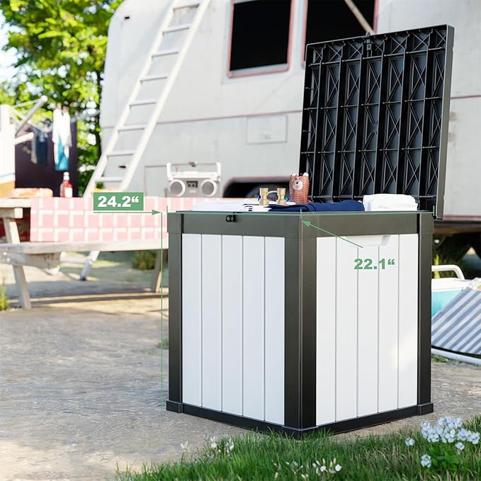 - ššØš¦š©ššš š²šš ššØš°šš«šš®š„ - With product dimensions of 22.1"L x 22.1"W x 24.2"H , Although this outdoor storage box has a storage capacity of only 28 gallons, but it can hold a variety of additional items in your backyard, such as patio cushions, pillows, gardening tools, and hoses. This outdoor storage box is the best choice for storing small items.Applicable age: 0 years and above