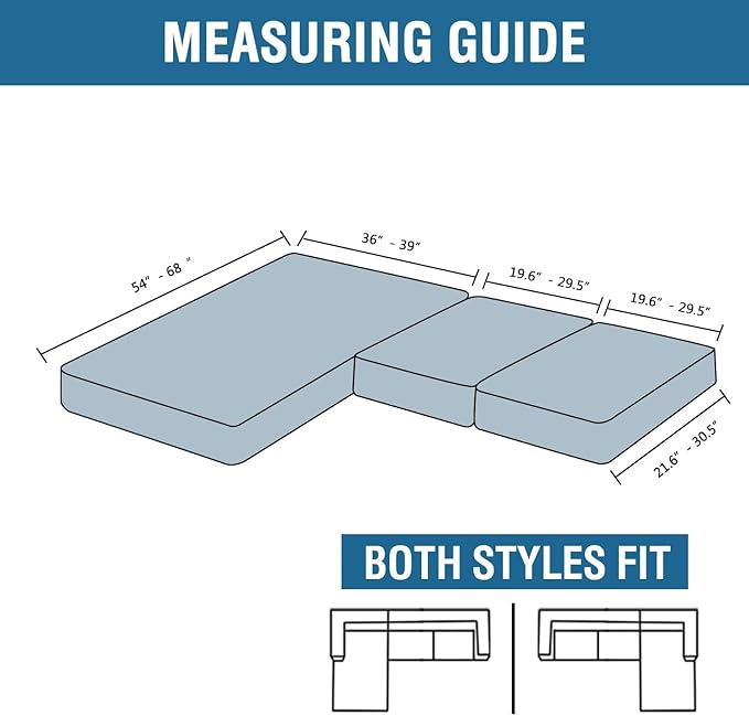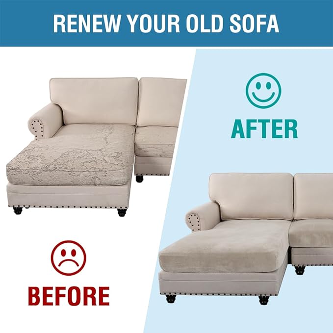 - UPGRADED THICKER: Each individual cushion cover fits up to 19.6-29 inch width, 21.6-30.5 inch depth, 3-8 inch thickness while the chaise cover fits up to 32-38 inch width, 54-62 inch depth, 3-8 inch thickness. Feature one-size-fits-most, kindly measure before ordering.