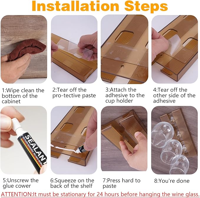 - Easy to Install:The wine glass rack is equipped with self-adhesive adhesive, Punch-free,easy to install,Due to the different materials of cabinets,suggest installing the screws