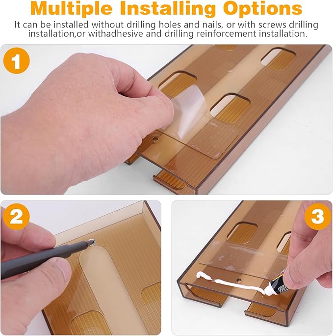 - Easy to Install:The wine glass rack is equipped with self-adhesive adhesive, Punch-free,easy to install,Due to the different materials of cabinets,suggest installing the screws