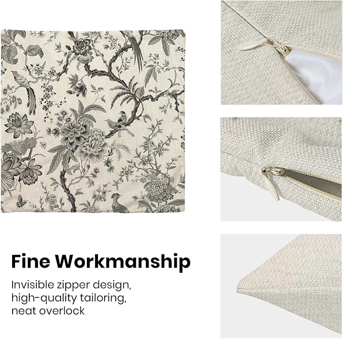 - 【Spring Pillow Covers】 Our Chinoiserie floral throw pillow covers 18x18 inch are made of excellent breathable polyester cotton fabric. The black and white floral decorative pillow covers is durable, soft and skin-friendly. The plant outdoor pillow covers adopt exquisite edging technology and four sides of our floral pillow covers are sewn firmly, which is not easy to open the line.