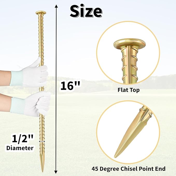 - 【Ribbed & Yellow Galvanized】These rebar stakes are made of malleable steel material. Yellow galvanized to help avoid rust. Ribbed ground anchors are solid, secure firmly and no bend.
