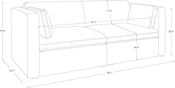 - 2-Piece Modular Sofa - CHITA modular couch features clean and classic design with comfortable seats to offer you a never ending relax after a long day. Individual seat dimension: 34''W x 21.5''D x 18.5''H. Overall sofa dimension: 78''W x 33''D x 35''H.
