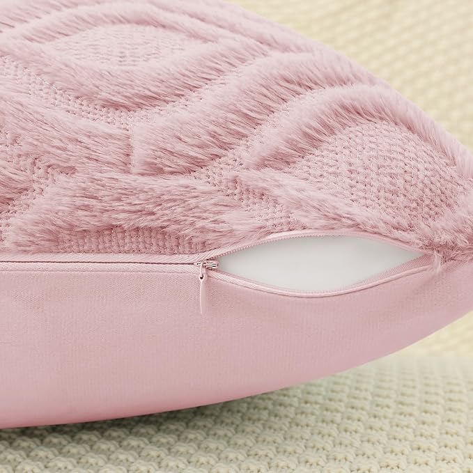 decorUhome Throw Pillow Covers 20x20 Inch Set of 2, Soft Plush Decorative Faux Fur Light Pink Solid Couch Pillow Covers, Accent Farmhouse Neutral Square Euro Pillow Cases for Sofa Bed Living Room