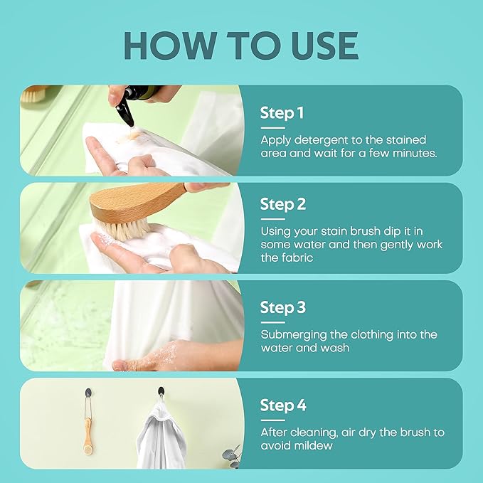 - Essential for Laundry Care: This brush is suitable for most fabrics, including delicate ones, though we recommend avoiding use on silk and wool. Itβs an ideal pre-treatment tool for stains. The handle features a convenient hanging loop for easy drying after use