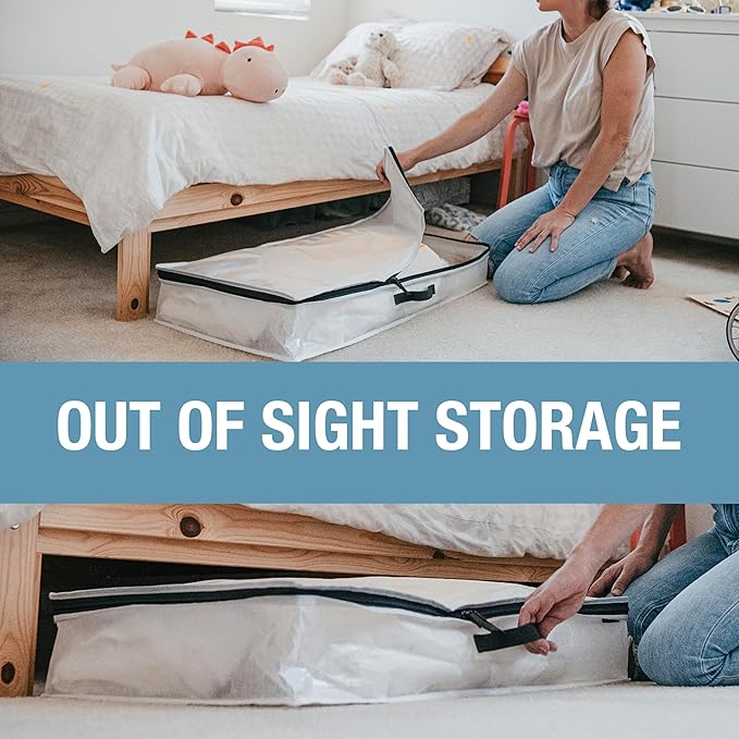 - SLIM, LOW PROFILE DESIGN: At only 5 inches tall, this low-profile storage bag is perfect for beds 6 inches off the floor or higher. Its collapsible design ensures it takes up minimal space when not in use.