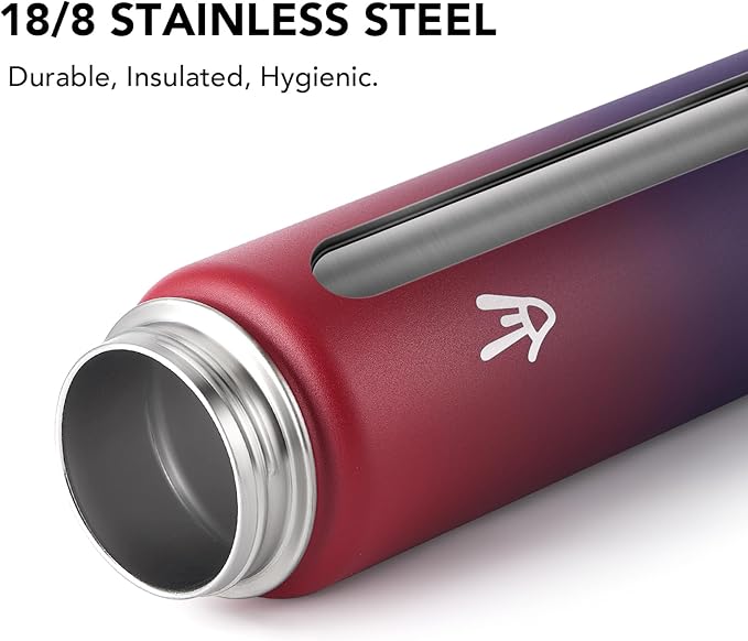 - Premium Quality: Through the upgraded, 32 oz insulated water bottleโs inner wall is made of food-grade 18/8 Stainless steel, and the outer wall is 201 stainless steel. Rest assured, our leakproof sports water bottle is 100% BPA-free, non-toxic, odorless, rust-proof, and absolutely safe for daily use.