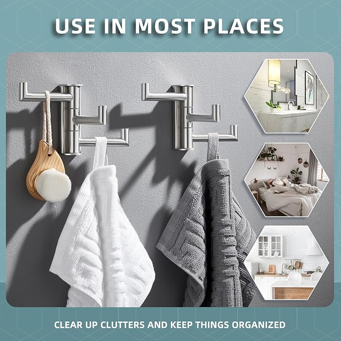 - ORGANIZED STORAGE: swivel hook with 3 arms allowing for at least 3 items to be hung at once as a life-efficient accent, which not only eliminates clutter but also saves space