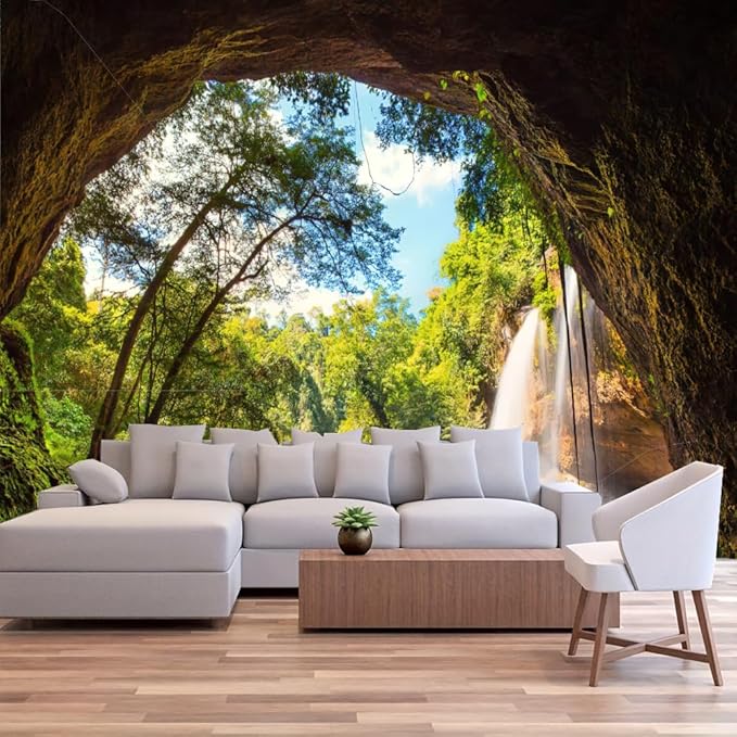 FENDROM Green Misty Forest Tapestry Wall Hanging Nature Mountain Cave Landscape Tapestry Waterfall River Tapestries for Bedroom Living Room Dorm Decor