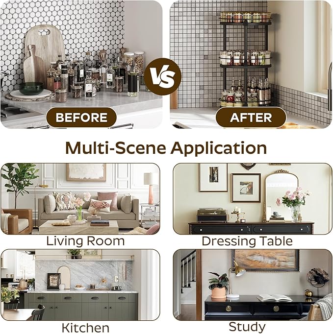 - Crafting Time: Our spice rack comes with all necessary accessories, clear instructions and installation tools. By following the instructions, you can quickly assemble this multifunctional and practical rotating spice organizer right away