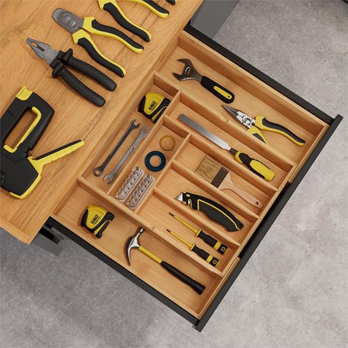 - Premium Tall Design: At 3.9 inches in depth, our bamboo drawer organizer offers greater storage capacity, providing ample space for a variety of utensils, tools, and accessories, ensuring everything stays organized and within easy reach
