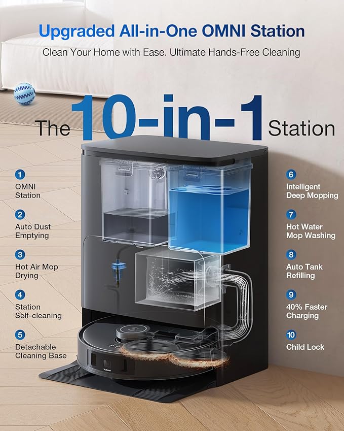 - Special Feature : 11000Pa Unbeatable Suction, 158β Hot Water Auto Mop Washing, Innovative ZeroTangle Technology, TruEdge Adaptive Edge Mopping Technology, Upgraded All-in-One Station 11000Pa Unbeatable Suction, 158β Hot Water Auto Mop Washing, Innovative ZeroTangle Technology, TruEdge Adaptive Edge Mopping Technology, Upgraded All-in-Onβ¦ See more
